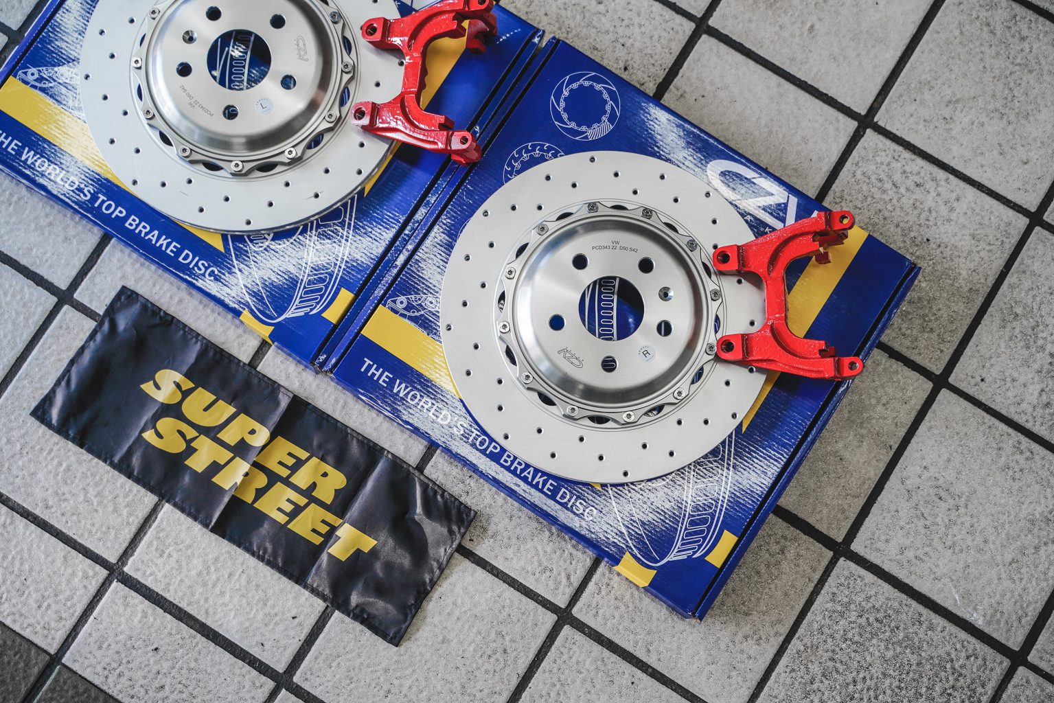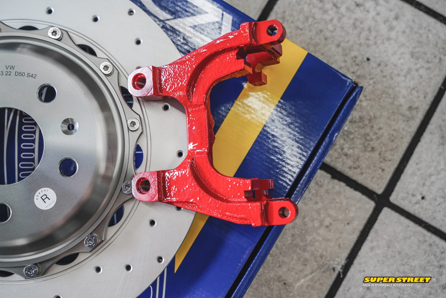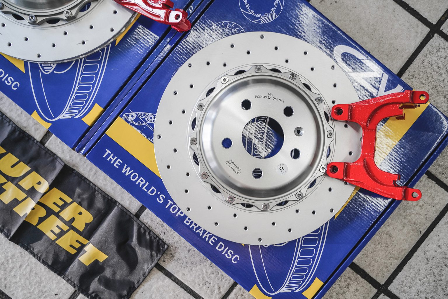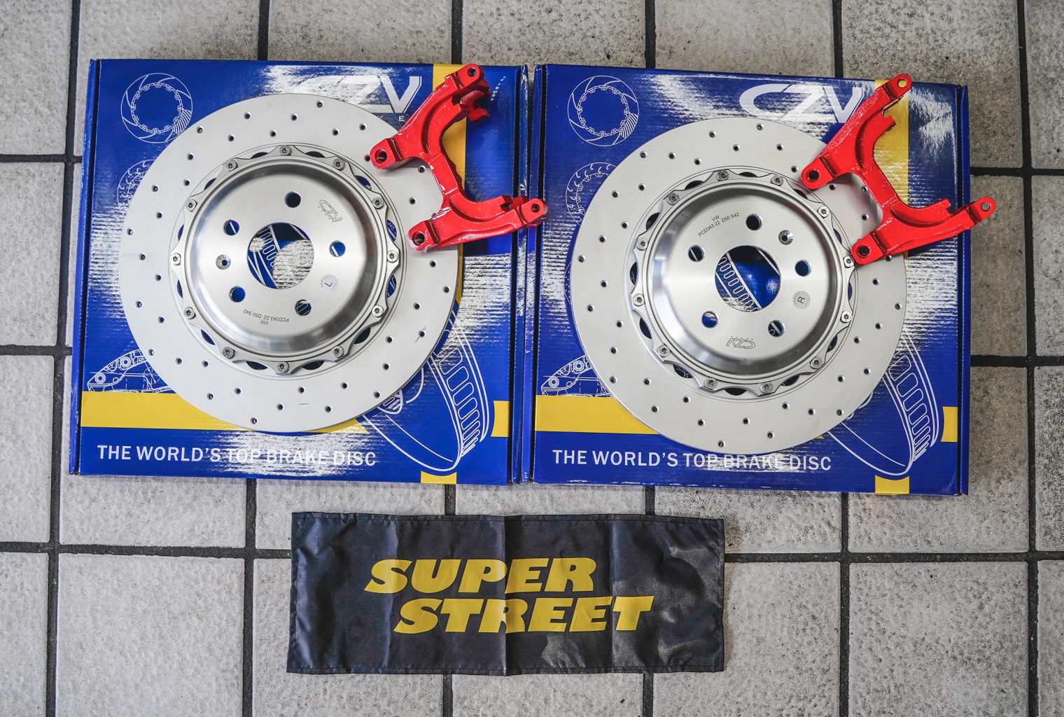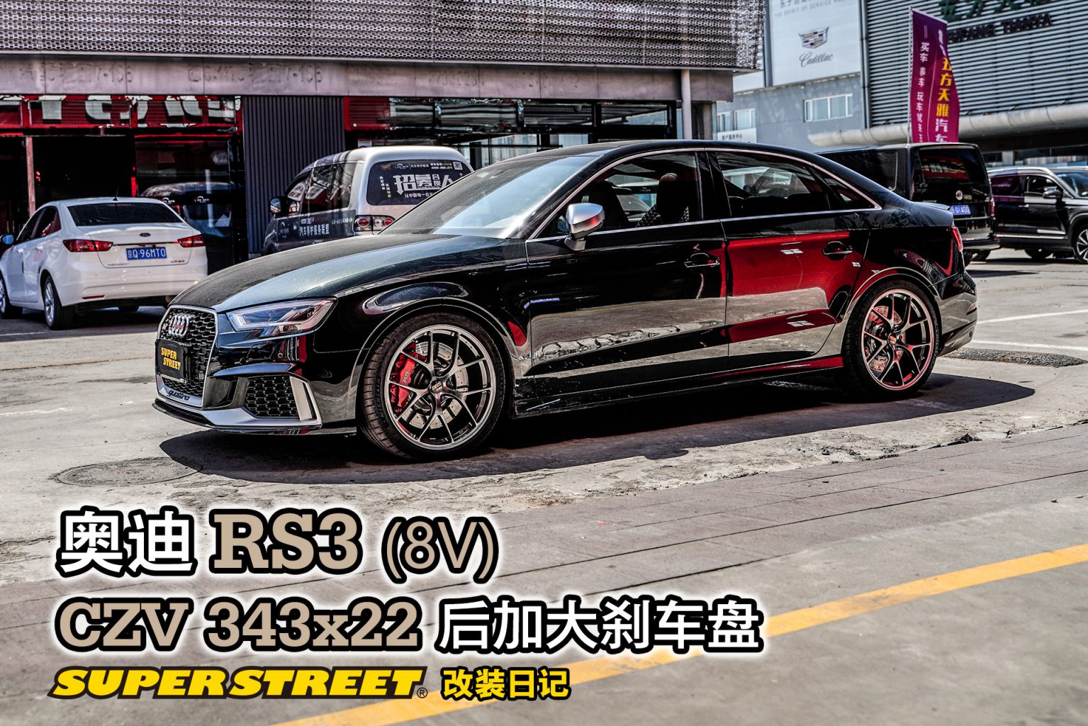 嗯,有CZV的后加大刹车盘,RS3车型可以装343X22mm的分体通风盘,可选划线盘、打孔盘,合头是6061锻造铝的,适合配备电子手刹的后轮安装。