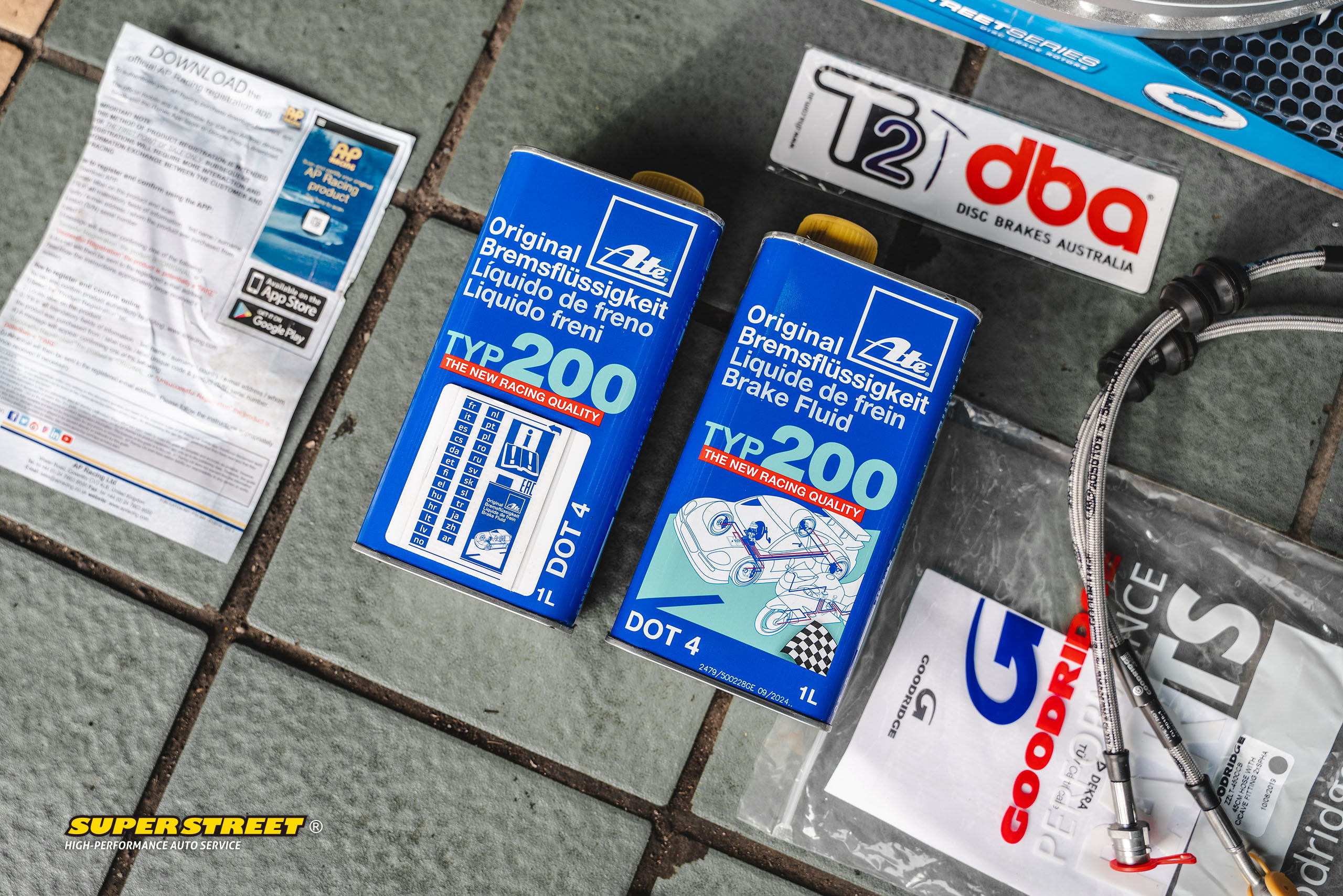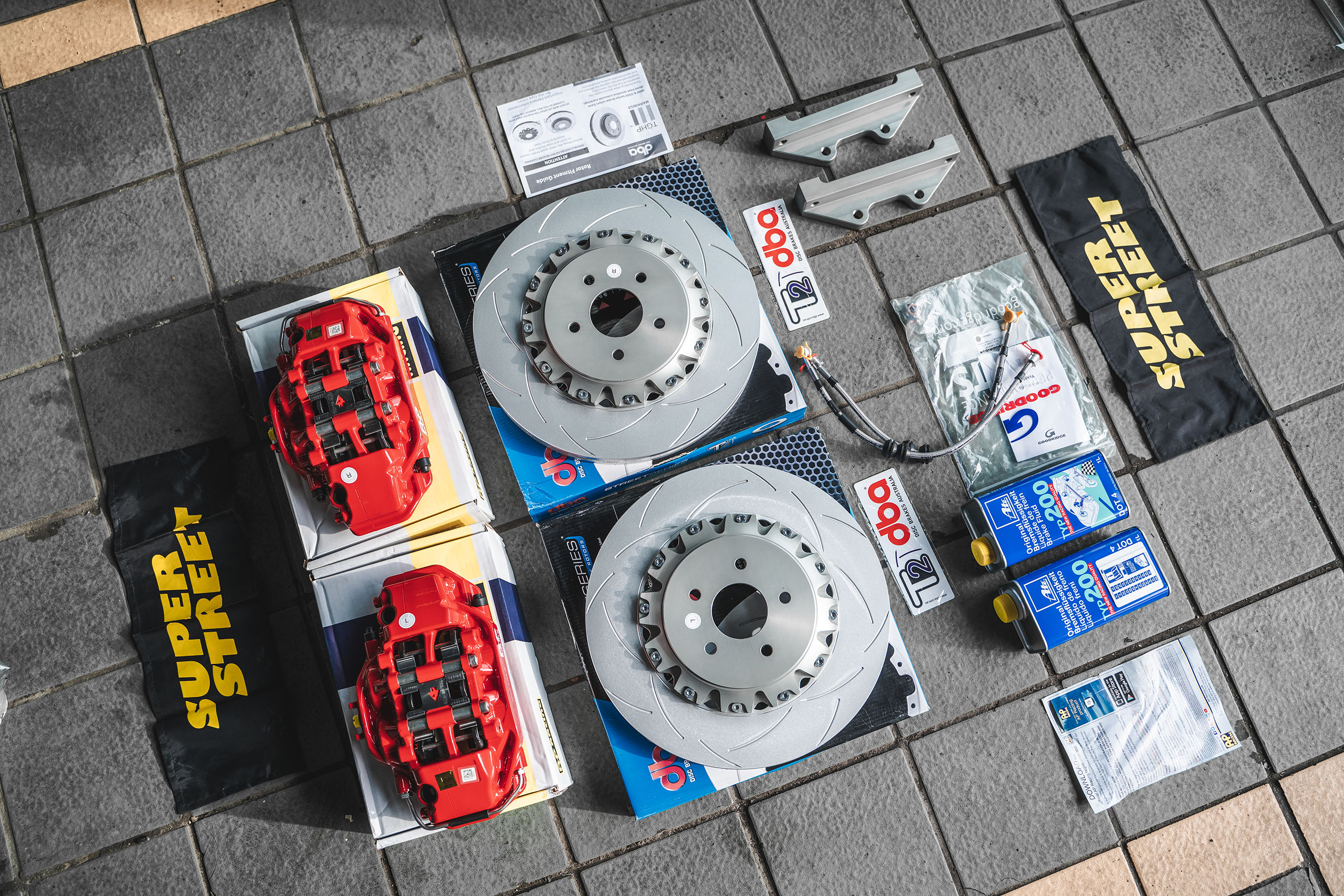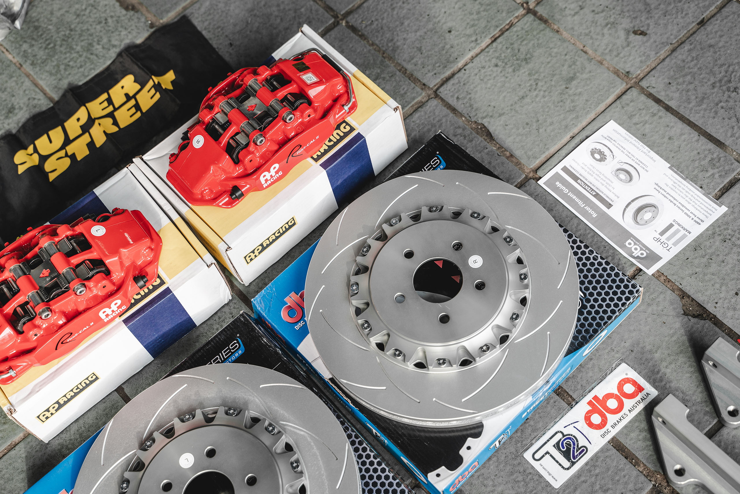 配件:AP RACING AP9540四活塞刹车套件;AP9540大四活塞卡钳,DBA T2划线刹车盘,AP RACING刹车片,GOODRIDGE刹车钢喉,7075定制合头桥位,ATE TYP200高性能刹车油。